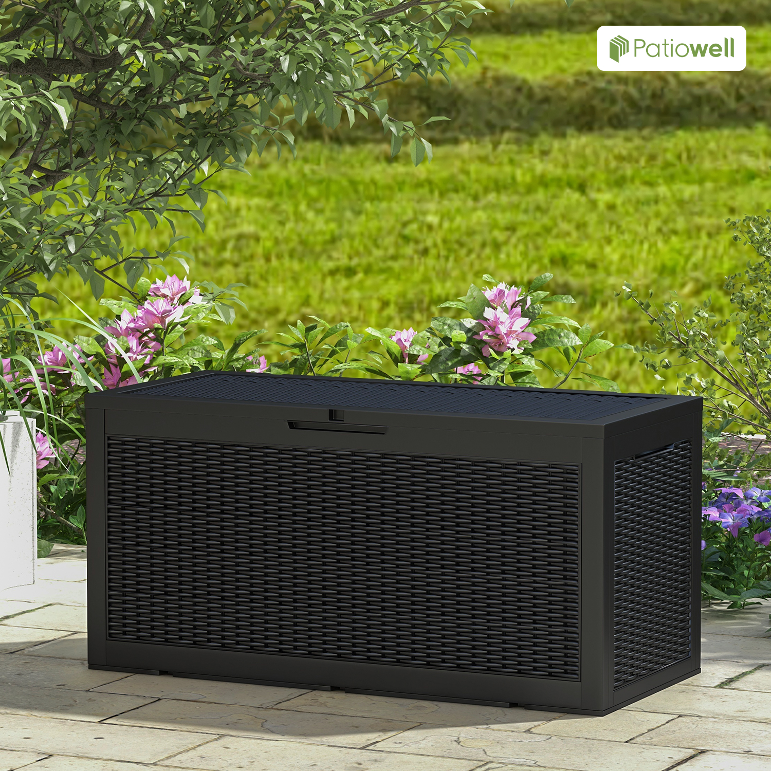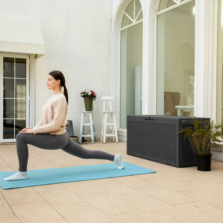 Patiowell 105 Gallon Deck Box Outdoor Resin Plastic Deck Storage Box Black Walmart Com